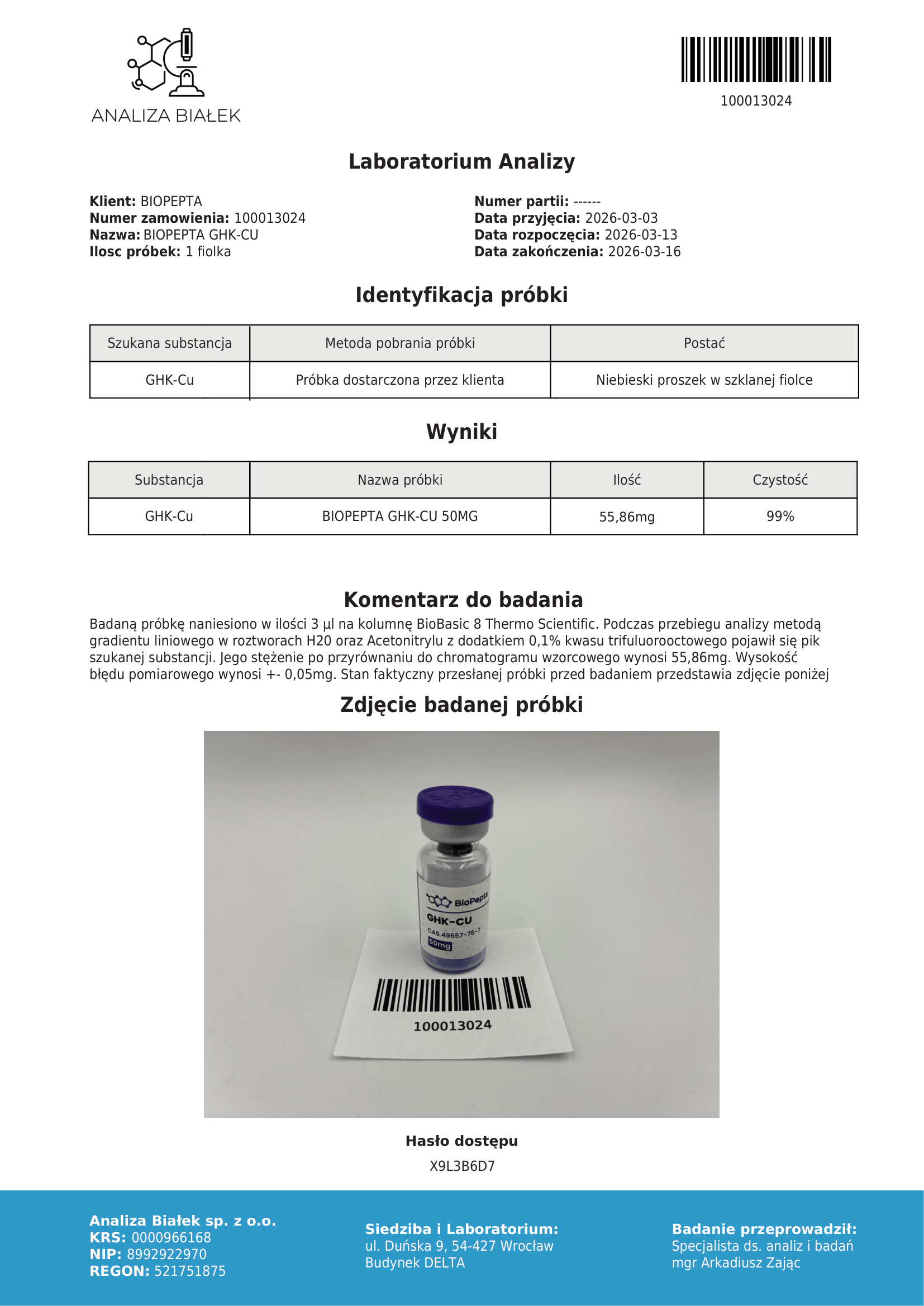 GHK-Cu oferowany jest wyłącznie do celów badawczych i analitycznych.